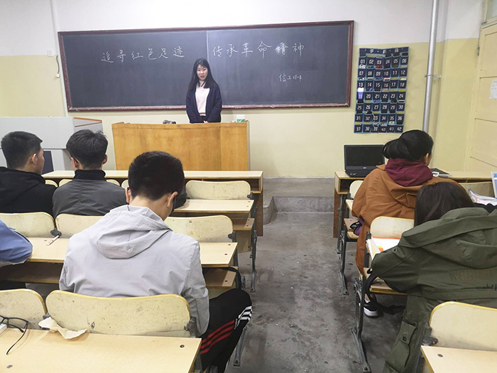 为弘扬革命前辈们“不怕苦,不怕累”的革命精神,激发同学们内在动力、不断学习提升自我,4月2日,信工18-1班于3304教室召开“追寻红色革命”主题团日活动,信工18-1全体同学参加,团支部书记辛春雨主持。