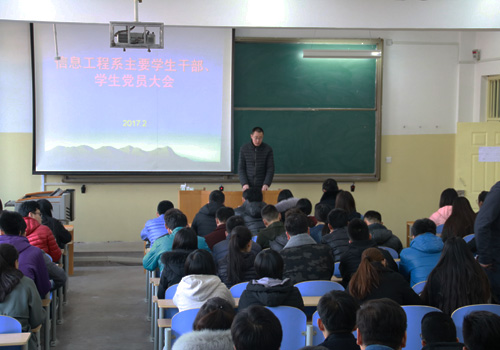 在主要学生干部及学生党员大会上,蒲蓬勃首先就上学期各项工作和学习情况以及新学期的工作重心和发展重点作了概括总结和任务部署。新学期以立德树人为根本,积极培育和践行社会主义核心价值观,认真做好安全稳定和思想政治工作,抓舍风、促班风、构建良好学风,从而强化三风建设。随后,蒲蓬勃要求学生干部树立带头作用,提高工作作风,在全系形成“以小带大促整体”良好精神面貌,构建优良学风。安全重于泰山,蒲蓬勃还就安全稳定工作作了着重强调。大学生应提高自我安全意识,高角度、多方面考虑问题。最后,蒲蓬勃鼓励同学们提高自我品德修养,内心充满正能量,积极健康。勤于自省、脚踏实地。