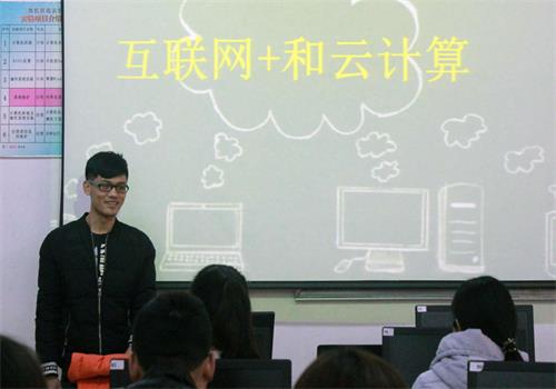 为拓展同学们的就业方向,并对“互联网+”有更明确的认识,网络14-1班于12月日5集体参加了校区、学院团委在礼堂举办“互联网+时代下的大学生创业及人生规划”的讲座。通过两个多小时的经验分享和交流,大家收获颇丰。在讲座结束后举行了更加深入的班级交流会,班会以“云计算”知识为主线,充分调动同学们对科技的好奇心,借此开展了“互联网+”与“云计算”的主题班会。