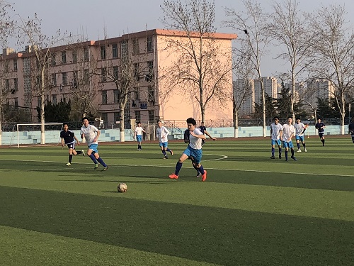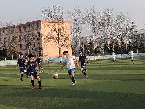 3月14日下午,由校区·学院团委举办的2018年大学生足球联赛第三场在西校园举行,经管系足球队对战机电系取得胜利。