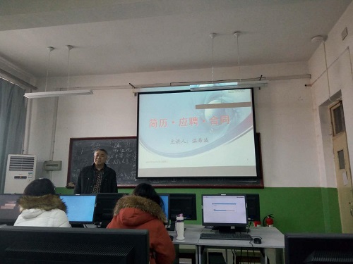 1月7日上午,经管系电子商务教研室副教授温希波老师,为2018届电子商务专业毕业生作了《简历·应聘·合同》的专题讲座。