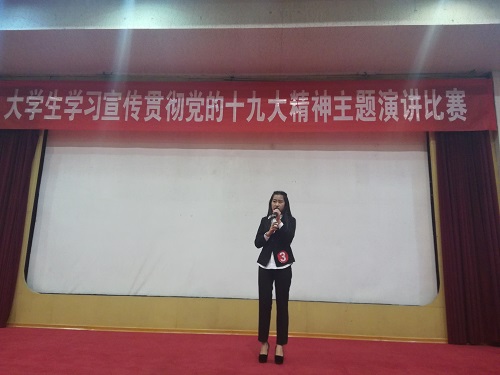12月20日,校区学院在东校园4号楼报告厅举行“不忘初心跟党走 牢记使命勇担当”大学生学习宣传贯彻党的十九大精神主题演讲比赛。来自校区各系的10名选手同台竞技,经过激烈比拼,我系国际商务17—1班学生李国宁以96.04的最高分获得一等奖,李慧敏获得优秀奖。(文:王备备)