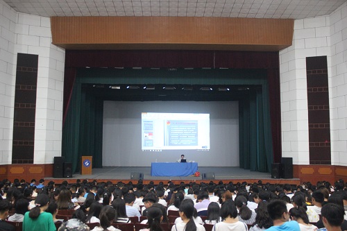 在“受教育,长才干,做贡献,积极投身社会实践”这一部分中,朱庆豪首先讲解了大学生社会实践活动的意义。他表示,大学生社会实践活动是对大学生进行素质养成教育,培养大学生立德修身、诚实守信及创新能力的重要形式。最后,朱庆豪以音频和图片的形式向大家介绍了暑期“三下乡”和青年志愿者系列活动。(文:孙彤; 图: 舒琦然 王莹 腾亚茹)