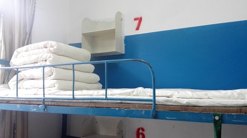 帅气学长亲自为新生亲自铺好床褥