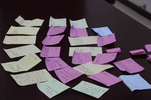 班会最后,张娜老师说,画笔在每个人手中,希望大家用剩下三年的大学时间,将大学生活填补空白,绘制出自己想要的绚烂图画;并发给每位同学一张便签,让每位同学写下“毕业后希望成为怎样的人”。同学们认真写下后,交由张娜老师保管。(文|图:战军歌)