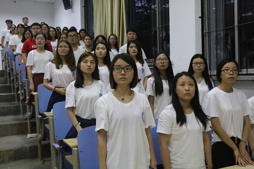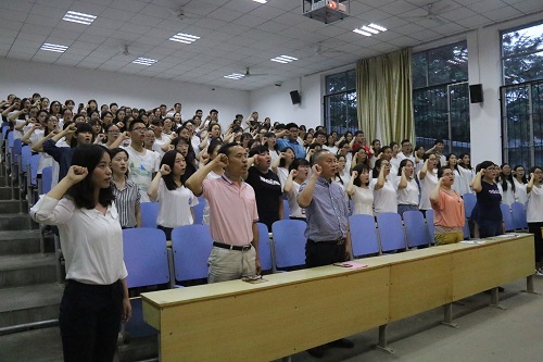 6月15日,经管系于1A107举行新党员入党宣誓暨老党员重温誓词大会。经管系党总支书记张恩生、辅导员老师及全体学生党员参加,大会由学生第一党支部书记周广文主持。