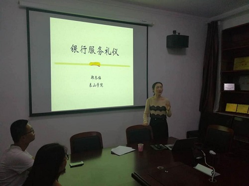 月20号下午,礼仪专家郑冬梅老师来我校经管系二号楼会议室为金融专业部分学生上了一堂精彩生动的银行礼仪培训课。