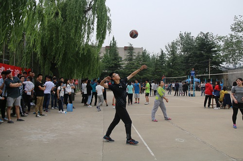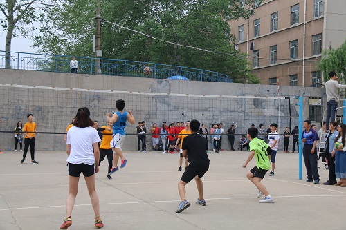“战争”一出即发,观众聚集在赛场周围翘首以待,而参赛队伍积极为比赛做热身准备。比赛一开始各队队员各施绝技,一个个精彩扣球,拦网,队员们互相配合,相互鼓励,老师们也努力为比赛贡献力量。第一天的比赛经管系各队伍用实力和行动展现了经管系师生的良好风貌。