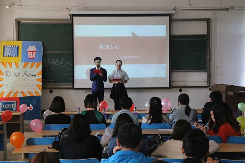 在初赛的激烈角逐后,共有六支队伍进入决赛。本次比赛共分为两个环节,第一环节为爱秀电影。通过放映特定片段的电影视频,由各组选手按顺序表演。各队凭借精湛的演技及出色的发挥将《小时代》及《家有儿女》片段表演的惟妙惟肖,引来观众的阵阵掌声。第二环节为爱猜电影,各组选手随机抽取视频和歌曲,播放后回答名字。比赛在轻松愉快地氛围中结束,最终天空海阔队脱颖而出,获得本次比赛一等奖。(文:孙彤;图:卢宇晴)
