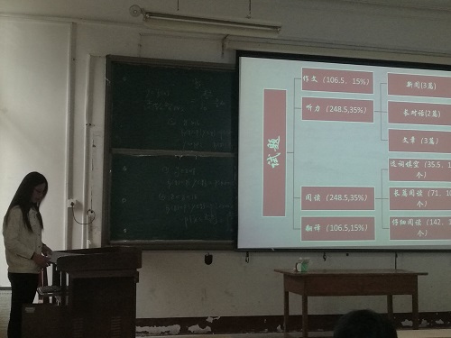 英语四六级是大学生活中非常重要的一部分,为提高大家英语学习的效率,更好的把握知识要点和应试技巧, 4月7日经管系在1c102举行英语四六级经验交流会,邀请在考试中取得优异成绩的国贸15-1程洪乾、金融14-1林晗进行经验分享。