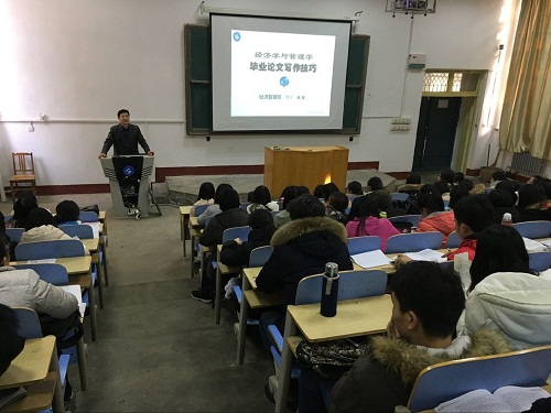 1月3日,经济管理系在1号教学楼A区107教室举办毕业论文写作指导报告会,邀请硕士生导师、经济管理系主任周洋教授为2017届毕业生做了专题报告。
