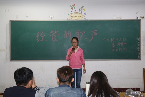 音乐展青春梦想,旋律奏人生辉煌。为营造积极向上、健康文明的校园文化氛围, 10月15日由经管系团总支主办、社团联承办的“经管新歌声”比赛在5204拉开帷幕。 比赛中,参赛选手激情演唱,一曲《秋天不回来》让人忧伤,一首《心墙》又让人顿觉明媚。评委对选手的音质与音准的优劣,自信程度,语言表达能力及形象气质进行打分。最后,有12名选手脱颖而出晋级决赛。