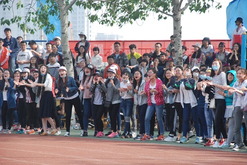 观众席旁,片片掌声,阵阵喝彩。竞技场上,运动员的表现牵动着每一位现场观众的心,同学们也不自觉的来到跑道旁,为自己所关注的运动员加油、助威。