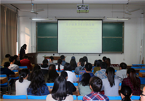 报告会采用PPT讲解的形式进行,主持人借助幻灯片,向大家讲述清洁卫生的重要性。她首先由世界卫生日的发展引出话题,指出卫生是世界人民共同关注的话题,是人们生活中不可或缺的一部分。接着,她又借助近年来世界卫生日的主题进一步点明主旨。然后她明确说明了讲卫生对我们生活的重要性,并联系实际,提出我们要从讲究宿舍卫生和校园卫生做起。