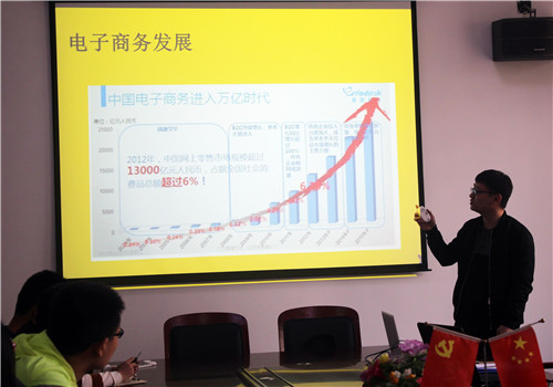 会议伊始,教科办于明奎主任说明了举办讨论会的目的,要求同学们学会讲公德、做公益,为集体、为他人做事;要以创新精神,以“删繁就简三秋树,标新立异二月花”来鼓励大家潜移默化地做事。在讨论中,13级电子商务的李霄简单介绍了电子商务的概念及发展,对大学生求职的各大网络平台进行详细对比。接着,同专业的刘法源细致介绍了购物技术与共享,以其从事运营工作的亲身经历给同学们讲解了如何购买性价比高的产品,并向同学们推荐了网络购物的便利网站。