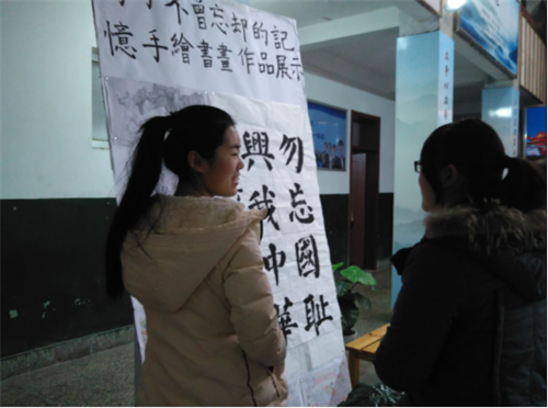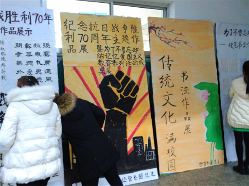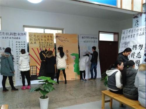 勿忘国耻,复兴中华。本次活动把抗战70周年与学团工作紧密结合起来,以特色和个人感想总结为主线,将整个成果展分为了作品展览和我眼中的抗战两大部分。在作品展览中,成果展展出了抗战题材书画、毛笔字以及抗战题材征文等丰富的作品,同学们积极参与到作品展览中,参观展出的作品,讨论那些“不曾忘却的记忆”;展览过后,同学们积极发言,激情澎湃,并就“我眼中的抗战”进行了自身总结,分享自己的体会和内心感想。抗战屈辱是历史教训,我们不能丢;爱国主义教育是记忆,我们要始终坚持。弘扬中华传统文化,提高大学生人文素养。传统文化书法作品展也与同期开展,爱我中华,扬我国魂,同学们再次感受到我中华文化的博大精深,接受了一次难得的熏陶和洗礼。