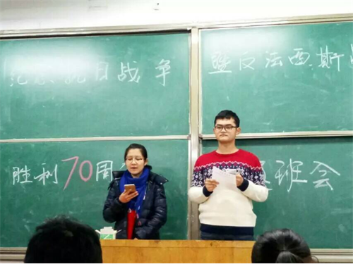 电商(高本)班的主题班会以集体学习讨论的形式开展,同学们纷纷发表自己对抗日战争的认识,特别是陆雪文同学为大家讲述了参观“侵华日军南京大屠杀遇难同胞纪念馆”的所思所想,让大家深受震撼。人力资源管理及国际商务班的主题班会同学们集体朗诵了《少年中国说》,在声声朗诵中,同学们激情涌动,随着朗诵的跌宕起伏而发出来源于心灵深处的感慨,不忘过去,把握现在,珍惜未来!会计(高本)班的主题班会则以国防知识教育竞赛的形式进行,同学们不仅加深了对近代历史以及国防知识的认识,更进一步意识到自己肩负的振兴中华的伟大历史使命,为实现民族的复兴祖国的强盛而努力学习。金融班的主题班会则以通过介绍抗战中的经典战役、人物事迹徐徐展开,还有会计班的激情演讲等等。