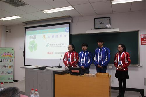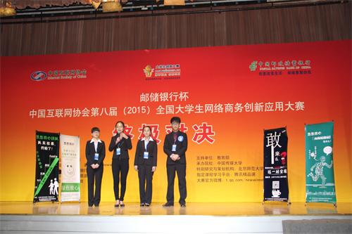 邮储银行杯第八届全国大学生网络商务创新应用大赛自2015年5月启动以来,历时8个月,共吸引了全国2000余所高校的积极参赛,直接参赛团队近5000支,其中来自207所高校的318支晋级全国总决赛团队,参与高校数、参赛团队均创造了大赛的新高。经管系两支团队分别是由于润东、樊金宸、李嘉莹、黎晓燕、陈家森组成的“三叶草”团队和由张腾飞、韩冲、胡文瑾、孙丽杰、汪梦伟组成的“悠悠我心”团队,陈福刚、侯学博两位老师全程指导。