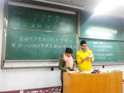 本次模拟考试得到了校区、学院教务部门的鼎力支持,协调了多媒体设备及考场。经管系事先做了充分的论证,制定了计划,确定了预案,从组织同学们自愿报名到联络确定考试时间,从进行考场分配到组织考试等各个环节精心安排、精细组织,全真模拟,确保了540名参加测试考生顺利完成考试,其中四级480人,六级60人。整个考试过程严格、有序,切实使即将参加考试的考生们感受到了在考场进行考试的真实氛围。