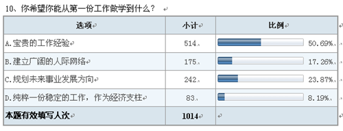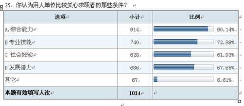 了解掌握毕业生就业创业意向是开展就业创业工作的基础。为详细掌握2016届毕业生就业意向,经管系通过网络平台,设计了详尽的毕业生就业创业意向调查表(网络地址:http://www.sojump.com/jq/6093187.aspx),通过为期一个月的调查,收到有效问卷1014人次,内容涵盖了学历层次、专业信息、就业渠道选择、就业因素分析、理想职业目标、就业目标选择、就业竞争力分析等27个问题。
