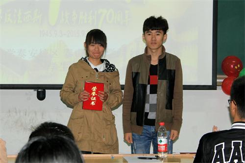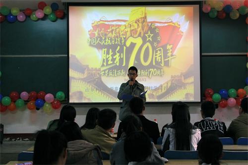“晴空万里,朵朵白云是飘空的梦想;东风浩荡,是五星红旗的不屈脊梁。”11月11日,经济管理系学生会在1c103举行“中国抗日战争胜利70周年暨世界反法西斯战争胜利70周年演讲比赛”决赛。