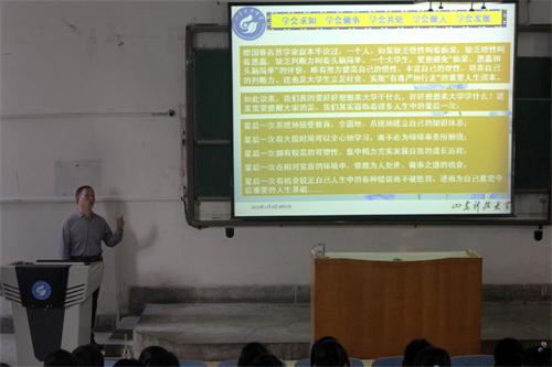 本次报告,陈福刚声情并茂地为同学们讲解了大学生活,相信在老师的循循善诱之下,学生们今后的大学生活会充实多彩。(文:周潇 图:刘晓龙)
