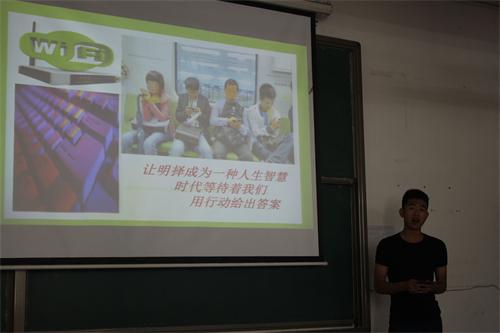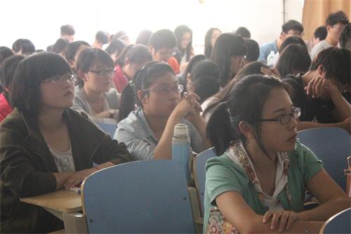 活动伊始,同学们通过PPT讲解、诗词朗诵等形式讲解”八字真经”的内涵。几位学生通过朗诵《劝学》等古诗,赏析感人肺腑的电影《背起爸爸上学》教育大家要有坚定勤学的内心,要认真思索准备度过怎样的大学三年生活。随后,通过2015最美孝心少年吴林香的感人事迹和对商纣王、周文王的对比启迪大家修业先修德,“无得为败,修德为王”;“长太息以掩涕兮,哀民生之多艰”,同学们又通过对爱国诗人屈原的追忆教大家明辨是非曲直,点亮人生灯塔。最后,参讲同学列举了达芬奇、李时珍等名人日积月累以致成功的事迹,启发大家将自己的人生价值融入社会主义核心价值观中,用脚踏实地的劳动实现中华民族伟大复兴。