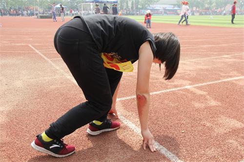 在4月23日西校园2015年春季运动会女子乙组200米预赛中,金融乙组代表队管培芹在上场前由于训练过度将脚扭伤,但她依然坚持上场比赛。在比赛过程中,她由于脚受伤在跑步过程中不慎摔倒,但她依然坚持爬起来,跑完最后的五十米。她的坚持不懈赢得了同学们的掌声。