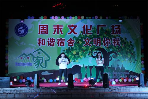 4月18日晚,由学生处宿管中心主办、经管系团总支与学生会承办的 “Dormitory culture”周末文化广场活动于校区、学院礼堂前隆重上演。金地源物业公司张燕经理、宿管中心副主任宋明永、经管系团总支书记刘凯及部分教师、学生代表观看了本次演出。