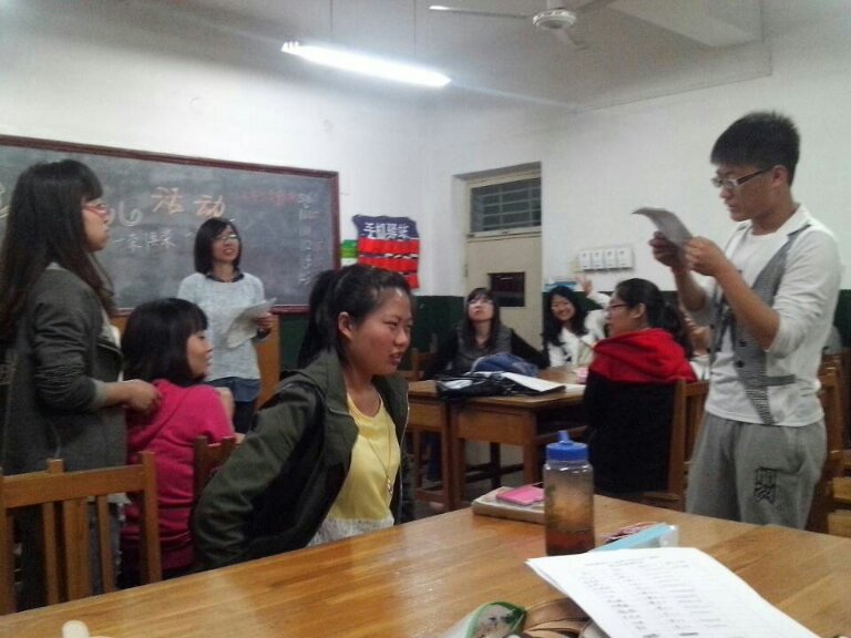 班会一开始,班长和团支书就本班级自开学以来班级成员表现状况进行简单总结。在总结中,班长指出班级成员在学习建设中勤奋好学,在文娱活动中主动踊跃,在思想态度上认真积极,并鼓励班级成员在新的学期鼓足干劲,继续拼搏。随后,班级成员开始了接下来的趣味班会。第一个活动是“我要当学霸”。成员们以宿舍为单位,两两宿舍进行PK。当“学霸”要熟读文学,要求对地理、物理、化学等知识大体掌握。双方你问我答,你攻我守,尽显大学生朝气蓬勃的气息。在“成语接龙”活动中,同学们都过了一把当文人墨客的瘾。接龙恰到好处,妙语连珠,从中可窥视同学们对文学知识的掌握程度和对知识的运用。班会在轻松愉快的氛围中进行着。