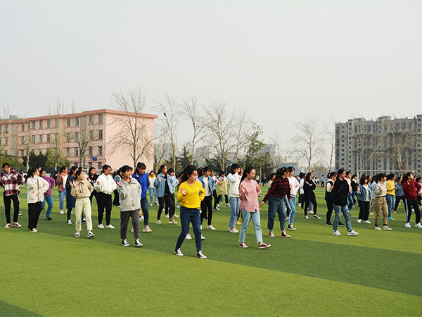 为迎接2019年春季运动会,文法系从三月中下旬开始组织排练开场舞,报名参加运动会开场舞的同学们正在积极准备着。