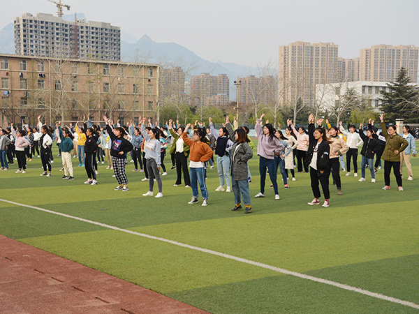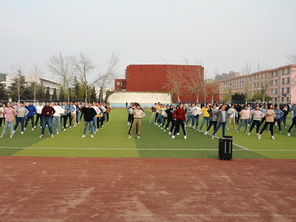 不论是舞蹈的选取、组织同学们踊跃报名参加、学习排练舞蹈,还是成员的选拔,文法系学生会都秉持着“笃行善思,踏实肯干”的会训,对于工作精益求精,不断追求完美,力争将最好的一面展示给大家。训练的同学们也十分认真刻苦,每天都会提前到操场集合,训练过程中牢记动作规范、前后左右对齐等要求,不仅自己跳的好,同时也更加注重团队整体的美观度。在训练的过程中,团总支老师经常到操场了解同学们的训练情况,为同学们加油鼓劲;姜丽老师也时常向同学们提出指导意见,纠正部门同学舞蹈中的细节错误。同学们正视错误,及时地进行调整,紧跟训练的进度。负责人杨淑婷表示,到目前为止开场舞训练人数还不符合要求,清明节后会针对同学们的舞姿、身体协调能力以及认真程度进行综合考虑,再淘汰部分人,最终会确定104名同学上场。