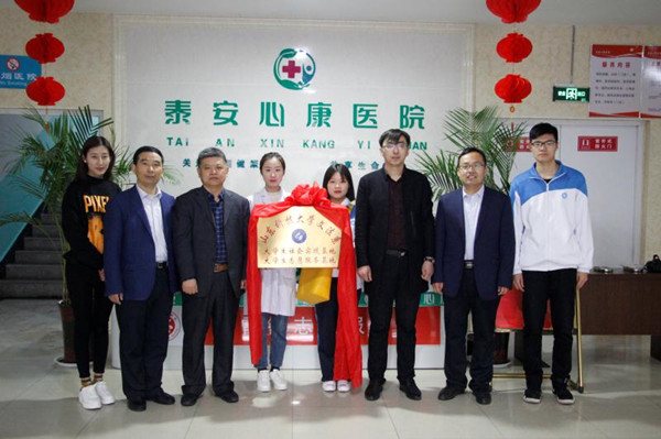 3月20日,文法系大学生社会实践和青年志愿者服务基地揭牌仪式在泰安心康医院成功举行,泰安心康医院院长刘萌、文法系党总支副书记刘相明、社会工作教研室主任桑爱友和团总支书记郭涛林以及学生代表参加。