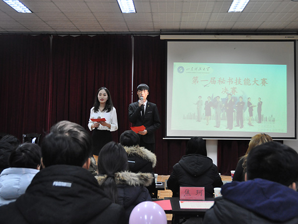 校区学院第一届秘书技能大赛是秘书协会承办的“一系一赛”的重要赛事,对提升秘书专业人才培养水平和职业核心竞争力,推进高校秘书学专业建设和人才培养模式的改革与发展具有积极作用。2018年文法系获得校区、学院第一届秘书技能大赛的承办权,为让参赛者更好的了解秘书技能大赛,使比赛顺利进行,秘书协会提前一个月召开“秘书职业技能大赛”交流研讨会,并邀请到全国秘书技能大赛团体一等奖获得者秘书学16-1班赵文辉和宋凤娇担任主讲人。他们主要向同学们介绍秘书基础知识、秘书基本技能、秘书职业形象这三部分,研讨会还强调了速录、硬笔书法、新闻写作等基本能力,为同学们参赛提供宝贵经验。11月至12月期间,秘书协会举行系内选拔赛和校区、学院第一届秘书职业技能大赛。比赛的诸多环节考察参赛者的语言表达能力、知识储备以及对秘书技能的掌握情况。选手们配合默契,表演各具特色,比赛效果良好。比赛锻炼和检验了同学们秘书实务“实战”能力,提高了参赛者组织管理能力、表达能力、交际能力、写作能力等,培养同学们的秘书技能,提高了他们的综合素质能力。秘书学18-1班参赛选手钱慧比赛后说:“通过比赛我熟悉了比赛流程,学到许多知识,也更加全面深刻地了解到秘书工作详细内容,为今后的学习打下夯实的基础。”她表示明年会继续参加职业秘书技能大赛,通过一年的学习来检验自己的能力。秘书协会让秘书专业的同学们将课本知识应用于实际,熟练掌握秘书技能,对其今后的学习和职业发展有着重要作用。秘书协会将会继续办好校区学院的秘书职业技能大赛,让其他专业的同学也了解秘书知识,掌握必要的办公软件使用、PPT制作和演讲等必要技能,培养、选拔更优秀的人才,使同学们在比赛中有所收获,在今后的发展道路上大放异彩。
