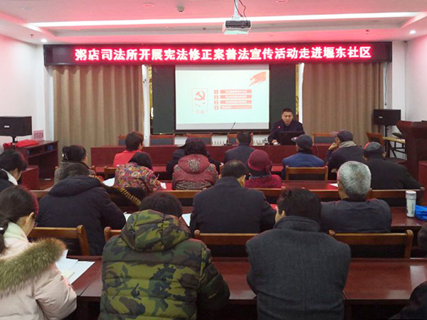 社区全体党员同志准时入场,经过庄严宣誓后,粥店街道堰东社区负责人简要介绍了开展活动的目的和意义。随后,粥店司法所刘波为党员和青年法学会同学们进行有关宪法修正案的主题宣讲。他强调宪法修正案共21条,包括确立科学发展观、习近平新时代中国特色社会主义思想在国家政治和社会生活中的指导地位等多方面内容,它是不断适应新形势、吸纳新经验的成果。随后,青年法学会同学们为社区群众发放宣传材料、讲解宪法知识,开展法律咨询服务等。青年法学会成员杨金茂说:“开展普法宣传教育活动,每一位大学生都应当从自身做起,有责任和义务帮助社区群众学法、懂法、守法、用法。”
