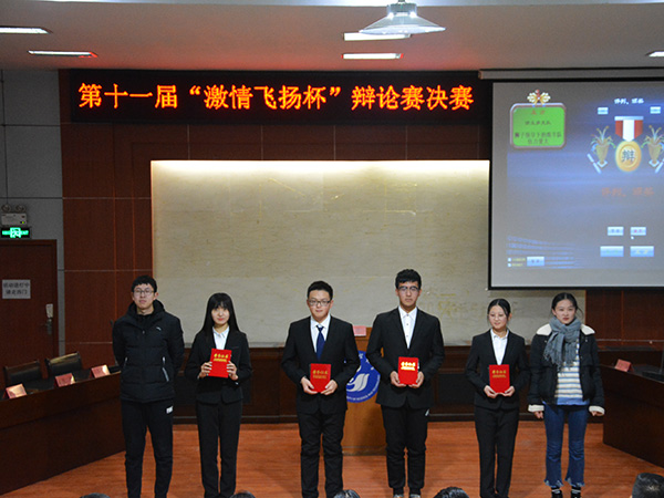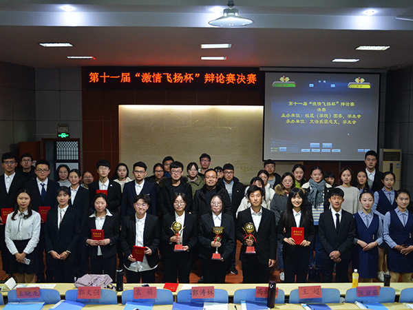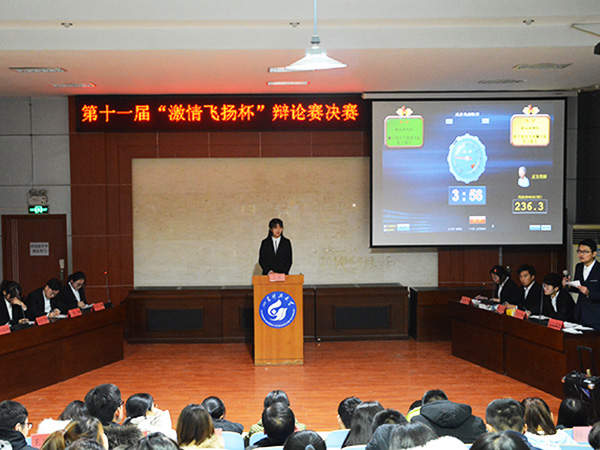 12月13日下午,由校区学院团委、学生会主办,文法系团总支、学生会承办的第十一届“激情飞扬杯”辩论赛决赛在模拟法庭举行,文法系团总支书记郭涛林出席比赛,资土系学生会副主席郭文强、文法系学生会副主席袁萌等人担任本次比赛的评委。