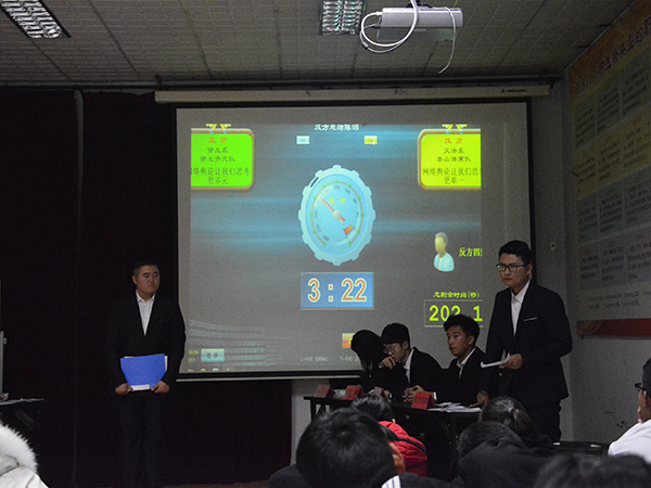 比赛分为立论、攻辩、自由辩和总结陈词四个环节,经过初赛的激烈角逐,共有信息系“72辩队”、机电系“东方神辩队”、资土系“资土多元队”、文法系“泰山诸葛队”四支队伍成功晋级复赛。经抽签决定,第一场辩论赛由信息系对战机电系,辩题为“人要活的天真VS人要活的世故”。双方旁征博引,有条有理。在随后展开的攻辩环节中,他们在对方的种种提问中寻找破绽,发散思维,步步紧逼,进行激烈交锋,为现场观众奉上一场旗鼓相当的高水平对决;第二场辩论赛由文法系对战资土系,辩题为“网络舆论让我们思考更多元VS网络舆论让我们思考更单一”。双方辩手针锋相对,尤其是在最精彩的自由辩环节,辩手你来我往,气势如虹,现场气氛空前高涨。其中,正方四辩选手以沉着冷静临场反应和条理清晰的总结陈词赢得台下热烈的掌声。最终,资土系“资土多元队”斩获冠军,文法系“泰山诸葛队”获得亚军,成功晋级决赛。