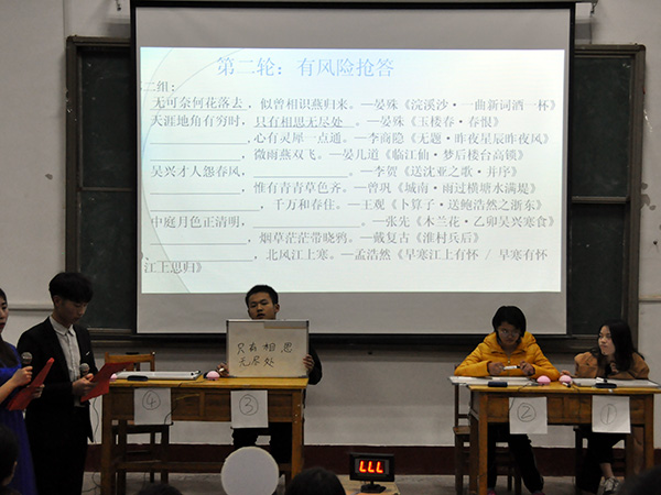 11月13日下午,由文法系团总支主办、学生会承办的诗词大会决赛在1A107举办。