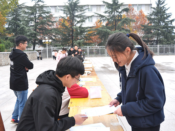 11月8日下午,由文法系团总支主办,学生会承办的舍规设计暨宿舍文明公约征集比赛在礼堂前举行。