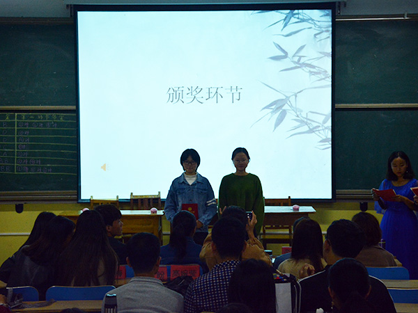10月31日下午,由文法系团总支主办、学生会承办的传统文化知识竞赛在1C103举办,文法系学生会主席焦珂及各部部长担任评此次竞赛的评委。
