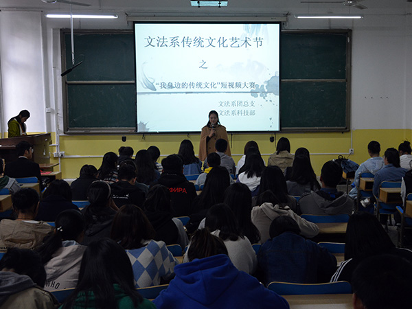 10月30日下午,由文法系团总支主办,学生会承办的传统文化短视频大赛在1c102举办。