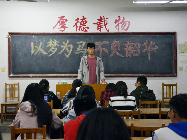 10月21日晚,文法系秘书18-1班于5#401举办“以梦为马,不负韶华”主题班会。班主任宿秀平、学生兼职辅导员梅玺萍及秘书学18-1班全体同学参加。