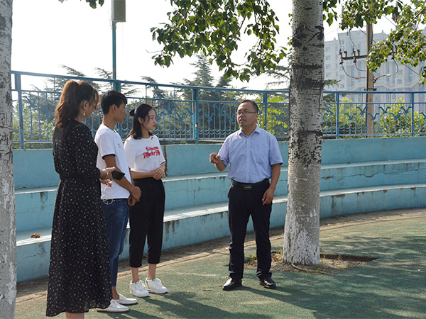 军训期间,团总支书记郭涛林和各班学生兼职辅导员也来到了训练场地,观看同学们训练情况,为新生们加油打气。