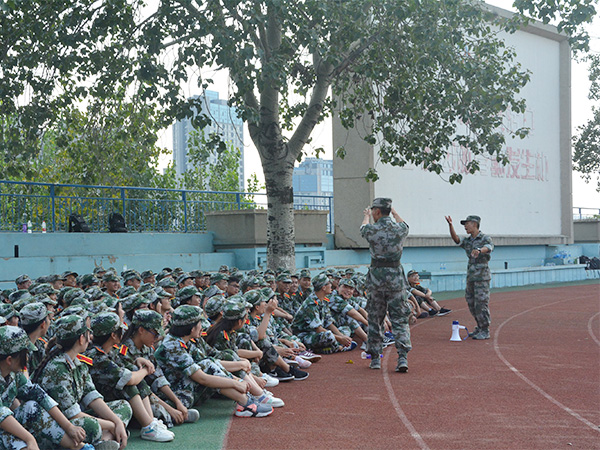 为鼓舞同学们士气,教官带领同学们唱军歌,三个连队间进行了有趣的拉歌比赛。