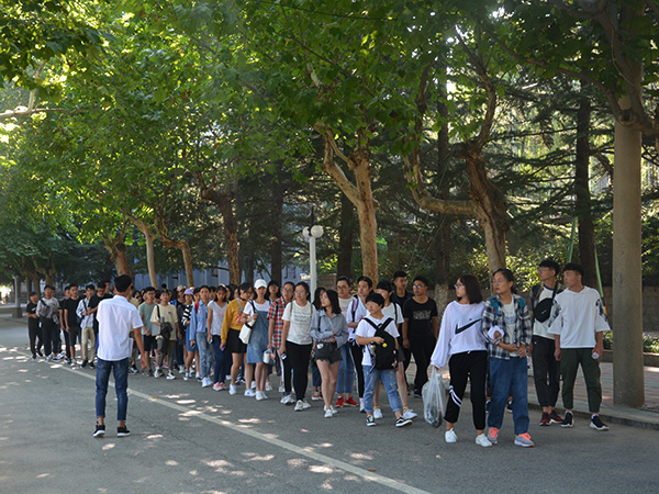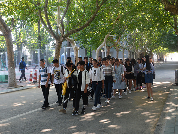 为了使18级新生尽快熟悉校园,融入大学生活,9月9日上午,文法系各新生班级学生兼职辅导员带领下新生们参观校园。