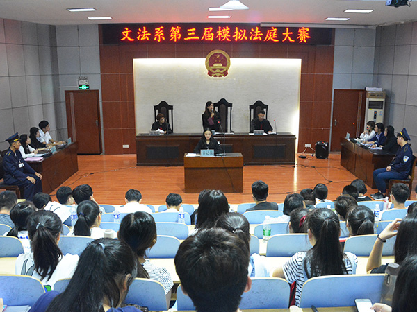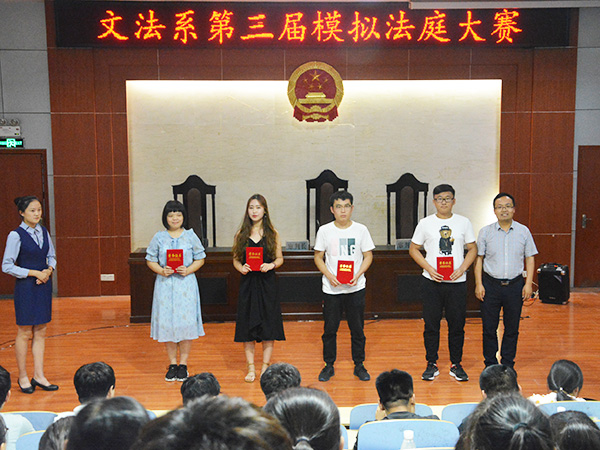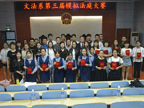 6月14日,由文法系团总支主办,青年法学会承办的模拟法庭大赛决赛落下帷幕。文法系团总支书记郭涛林、法学教研室主任刘辉、法学教研室老师李兴鹏和2017级法学专业全体学生参加此次比赛。我校校友、蓝天律师事务所律师杨翠萍和王群到场指导。