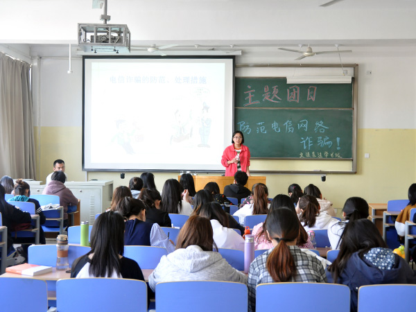 班会分为普及防盗防骗安全知识和讲解电信诈骗的防范、处理措施两部分。首先,法学16-1班团支书孔亚茹从网络购物诈骗、网络中奖诈骗、冒充身份的网络诈骗、面对面诈骗等九方面讲述防盗防骗安全知识,解读新兴起的网络诈骗的方式,告诫同学们不要因贪一时小利而让自己遭受更大的损失。随后,法学16-2班的团支书吕雪晴根据案例讲解电信诈骗的防范、处理措施,从如何预防诈骗、受骗后怎样处理两方面进行阐述。最后,吕雪晴说明了盗窃案多发的几种形式,并让同学们在外出时,时刻警惕盗窃者,保护好自身财产。
