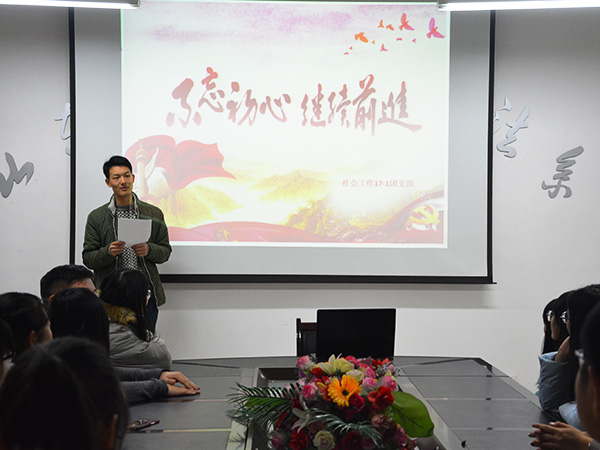 1月3日,社会工作17-1班在系会议室召开“不忘初心,继续前进”主题团课。