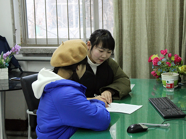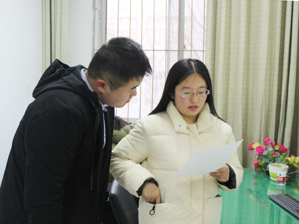 “益群”工作室集召开例会、沟通学习、处理日常工作,举办交流会等功能为一体, 12月6日下午,记者部部长郑丽绚在“益群”工作室为参加十九大演讲比赛的选手进行演讲稿修改指导,两名同学认真听取学姐意见并提出疑问,彼此形成良好互动。