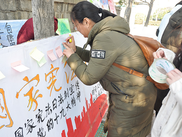 此次普法宣传活动不仅进一步提高同学们的法律意识、增强他们的法制观念,加深同学们对宪法精神与实质的理解,而且有利于营造和谐校园氛围,对深入贯彻落实党的十九大关于民主法制建设的论述具有重要意义。(文:李怀恩 葛庆盼 图:董梦琪 范玉雯)